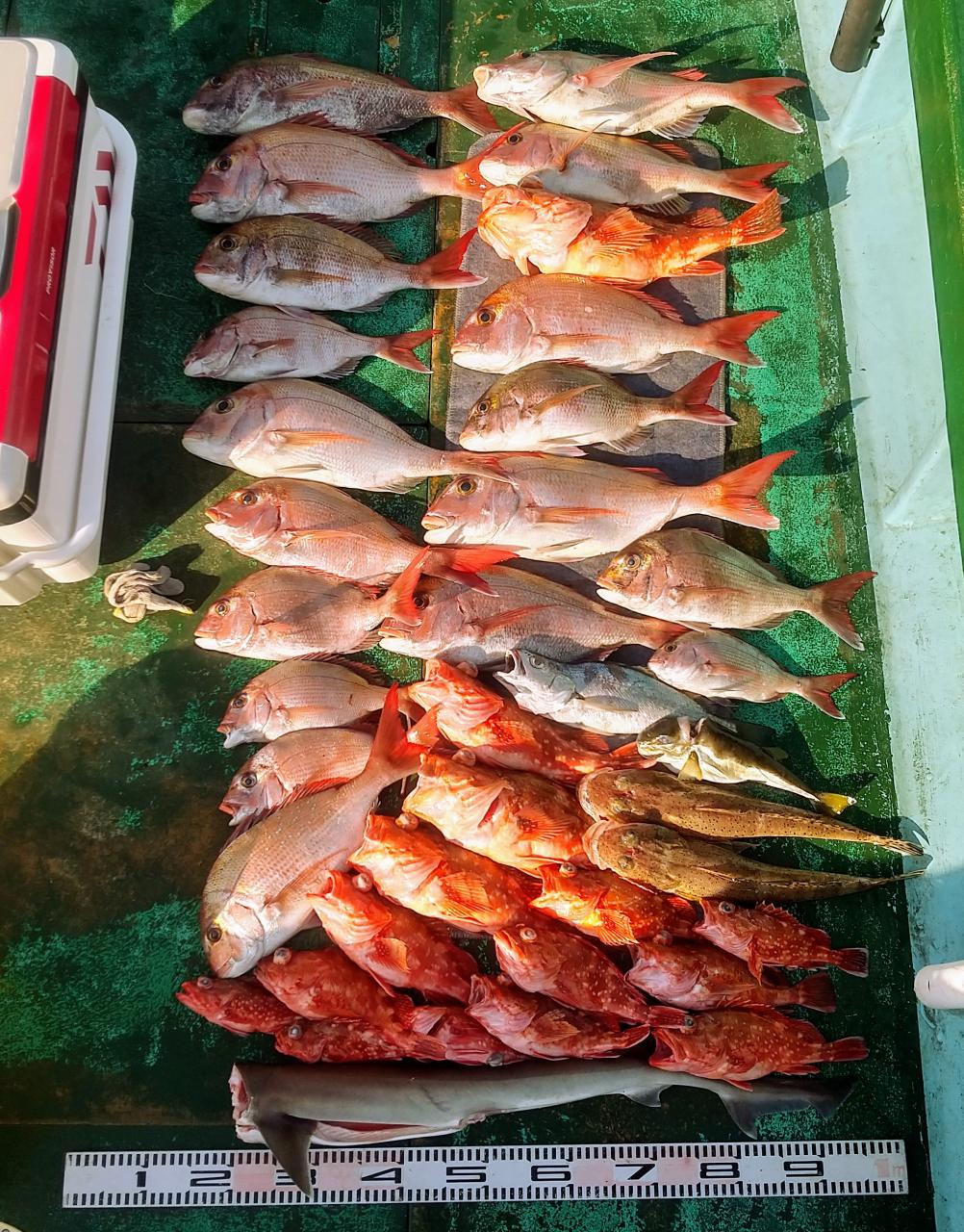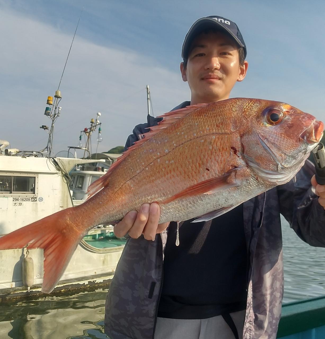 今日はマダイの食いも良く、丁度いい型のマダイさん次々ヒット〜!