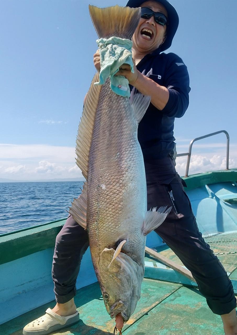 終盤に何やらスゴいアタリに強烈な引き込み!その正体は!?大マダイならぬオオニベのメーターオーバーだったりして〜(120〜130cmくらい?)