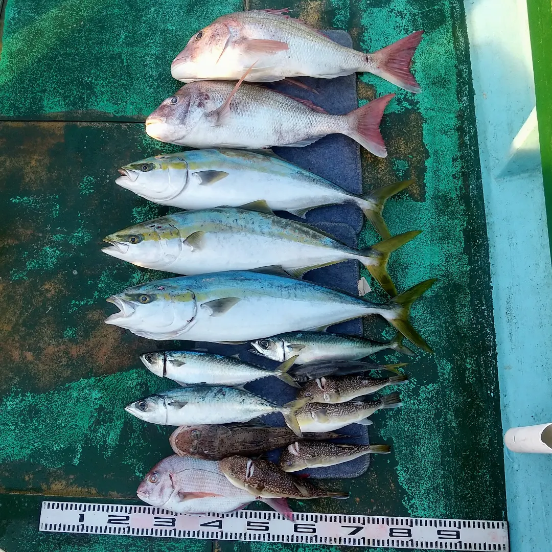 今日はお魚さん達の食いがあまり積極的ではなかったものの、マダイさん75cmの大マダイを初めとし、ブリ、大サバもヒット〜!