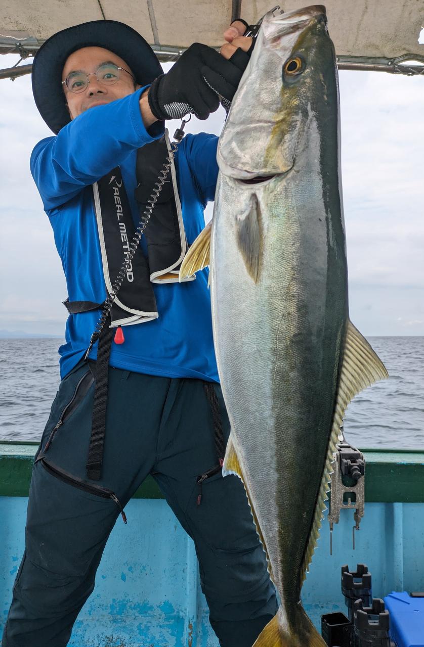 そして何やらスゴイ引き!約20分の格闘の末にタモに収まったのは90cm8.5キロの丸々ブリ〜!こりゃデカし!