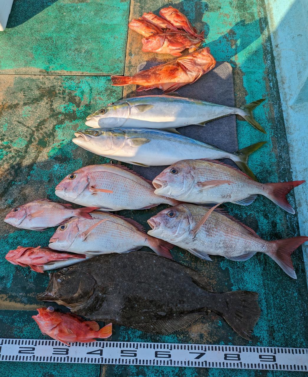 その代わり?良型マダイさん、ハマチ君、おざぶヒラメちゃん、ダイゴロウさんなんかがヒット〜!