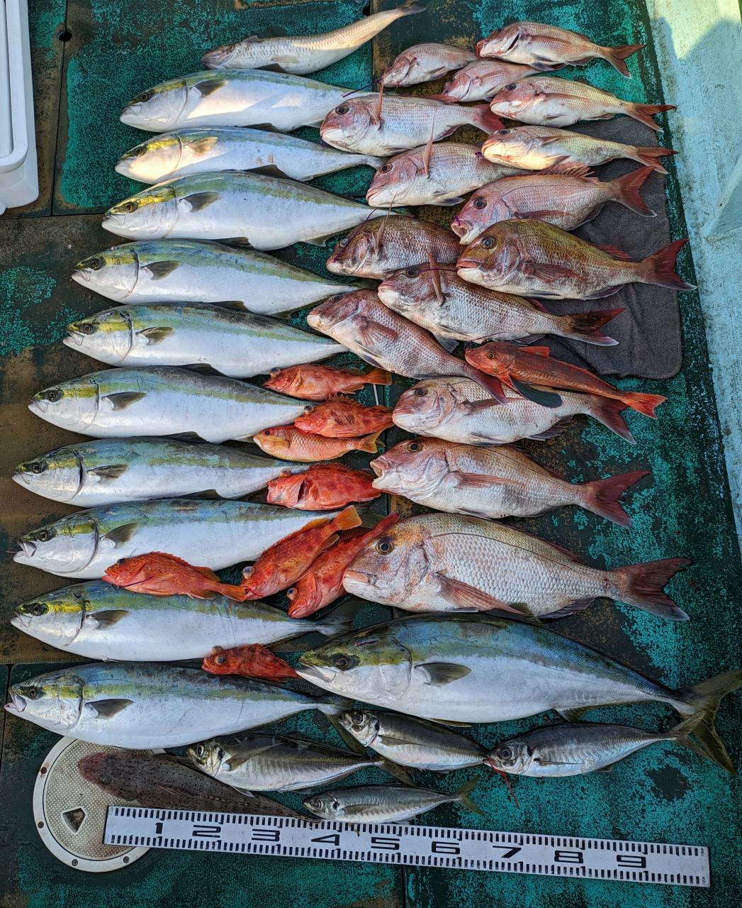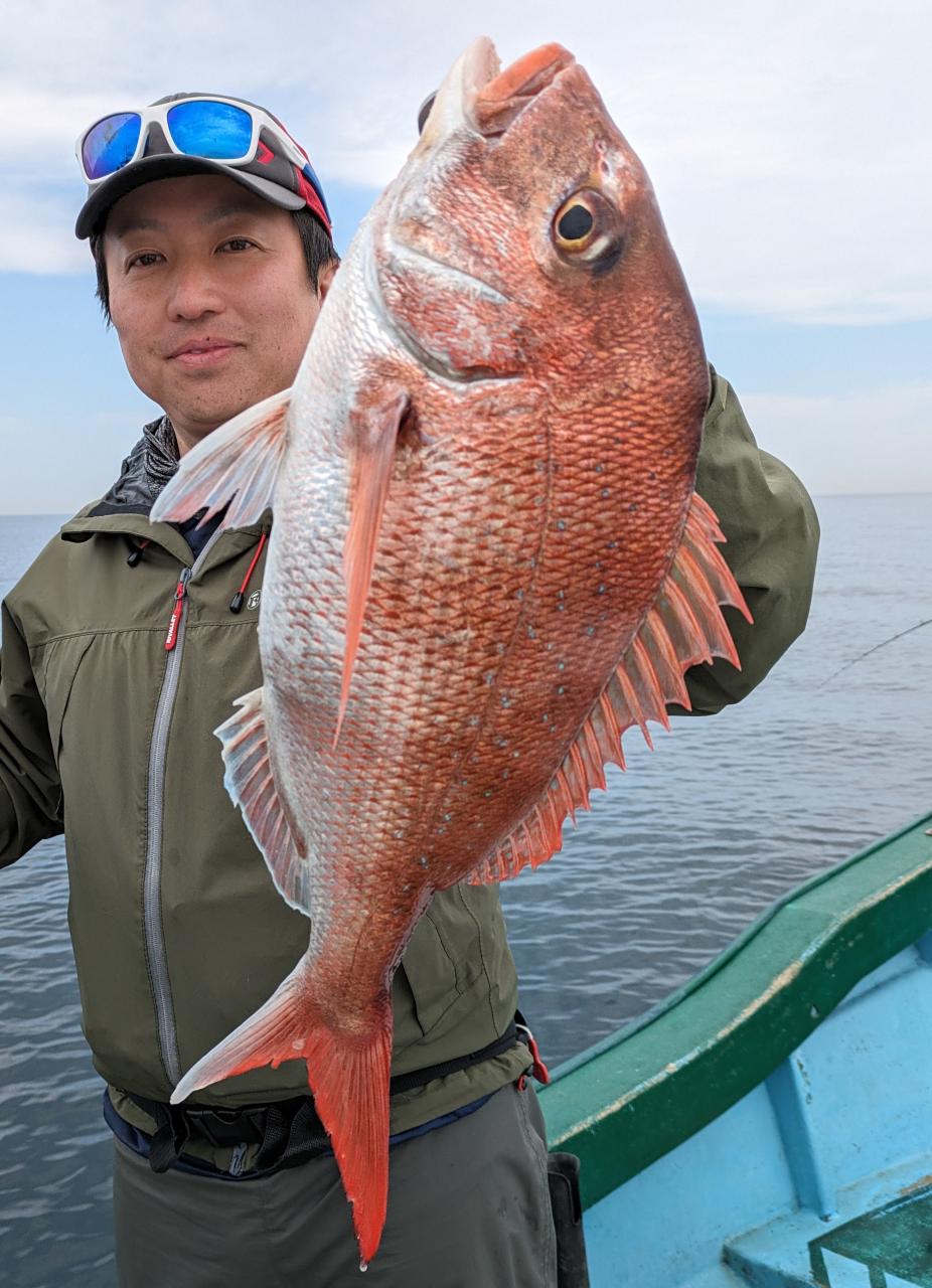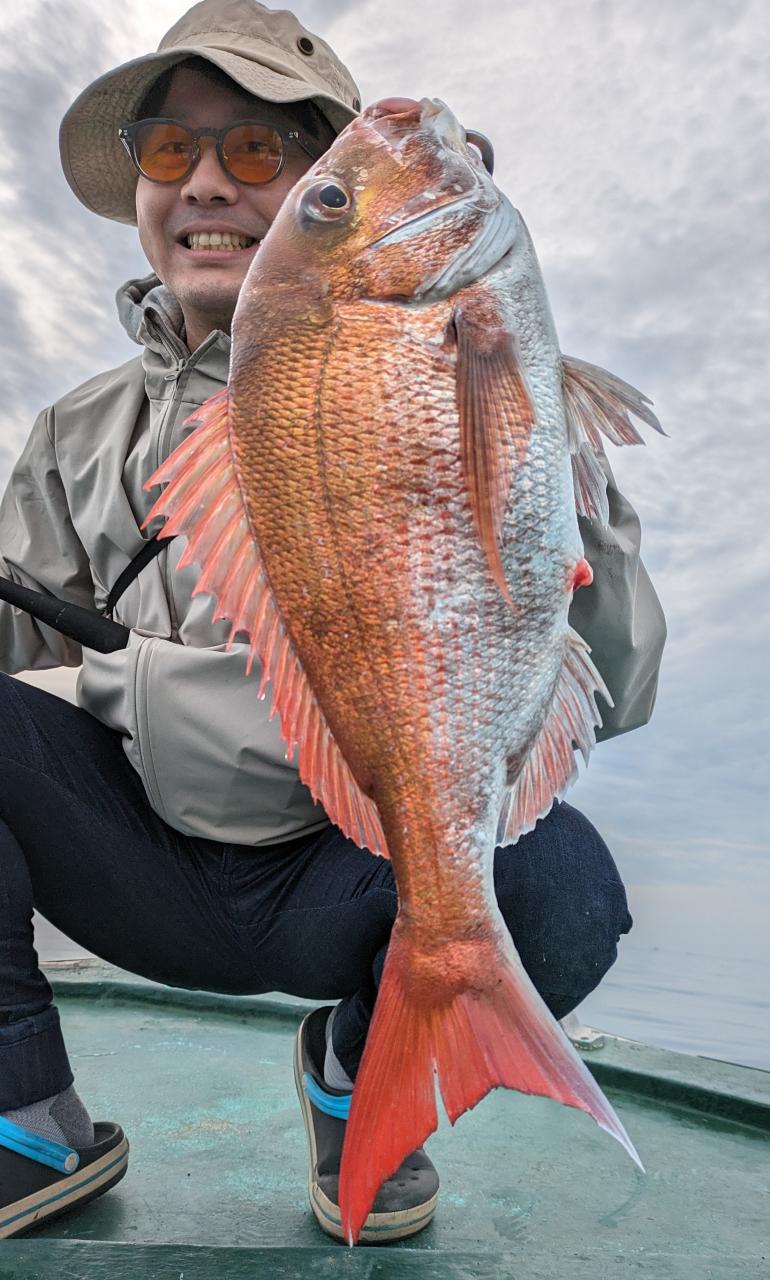その甲斐有ってか、68cmの大マダイさんを筆頭にマダイさんけっこうヒット!ラスト流しで極めつけ怒涛の連続ヒットもあって、まずまず釣れました〜。