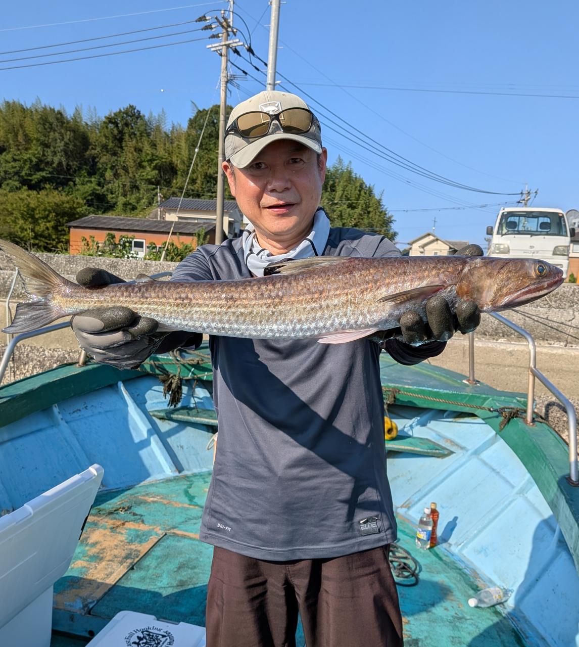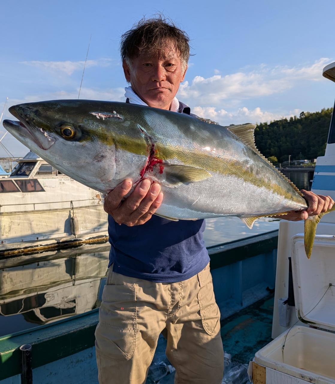 何度か流して、やっとクッター!!90㌢のドデカブリ君筆頭にブリハマチ君がナントカ皆さんに一匹ずつ!!食いは正直イマイチで、他の船も釣れてない中でオミゴトデシター。