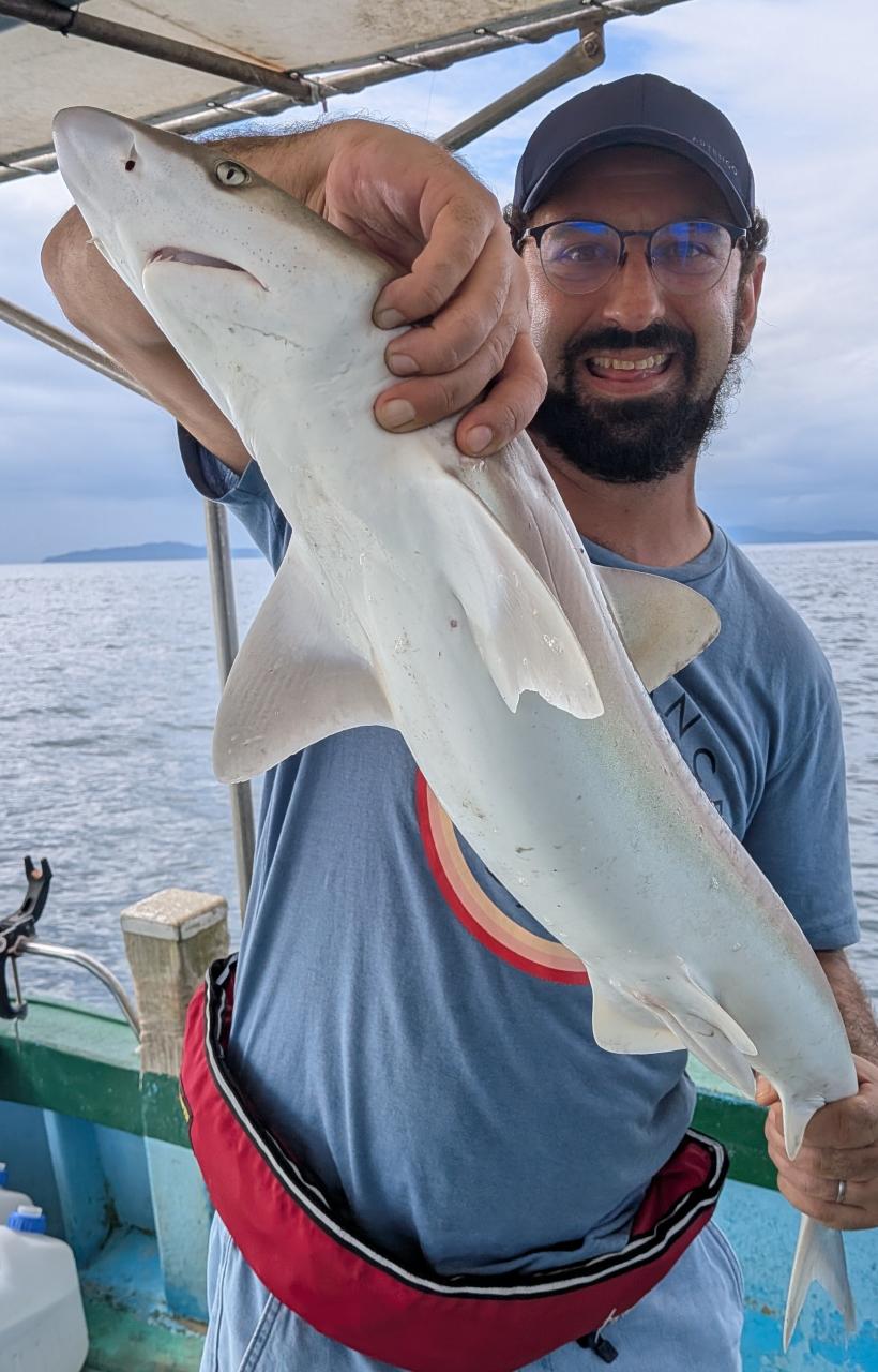 さて、朝イチから大マダイさんらしき強いアタリ!おおヤター!!ナナマルオーバーのマダイさんに違いない〜とみんな期待いっぱいの中上がってきたのは…ナナマルオーバーどころかメーターオーバーの巨SAMEちゃん〜(⁠@⁠_⁠@⁠;⁠)