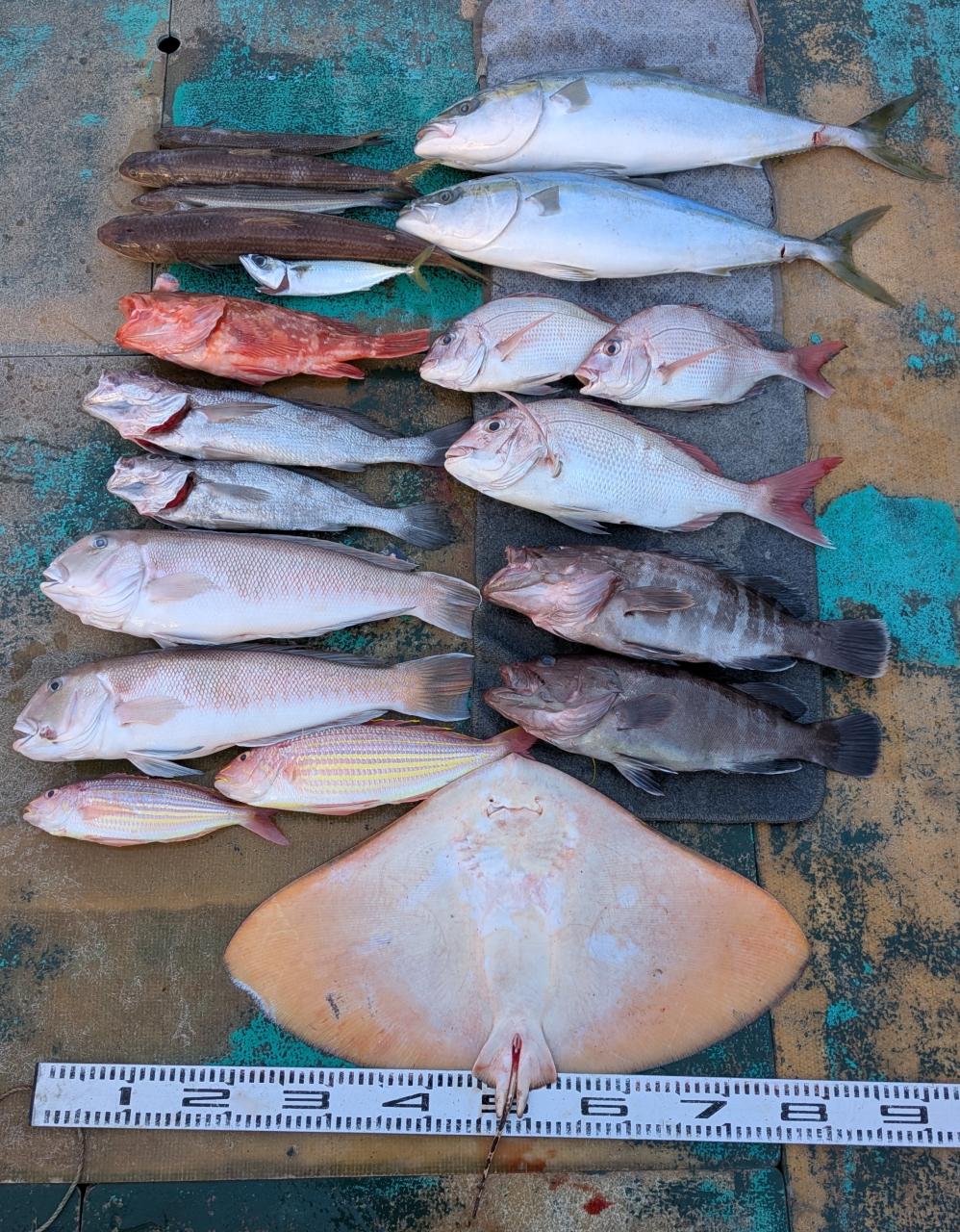 朝イチからシロアマ様ご降臨!ヂギングでは丸々のハマチ君そしてタイラバにデカマハタ、マダイさんもヒット!