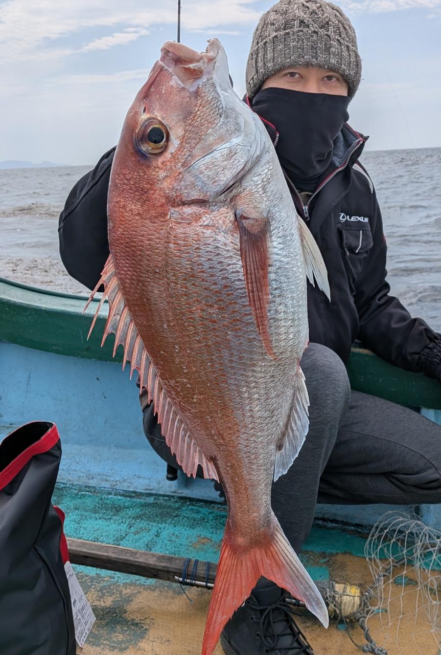 今日は先ずはマダイさん狙いから。水深65メートルでいきなりヒット!しっかりノッコんだロクマルマダイさんからスタートでありました〜サイサキヨイヨイ