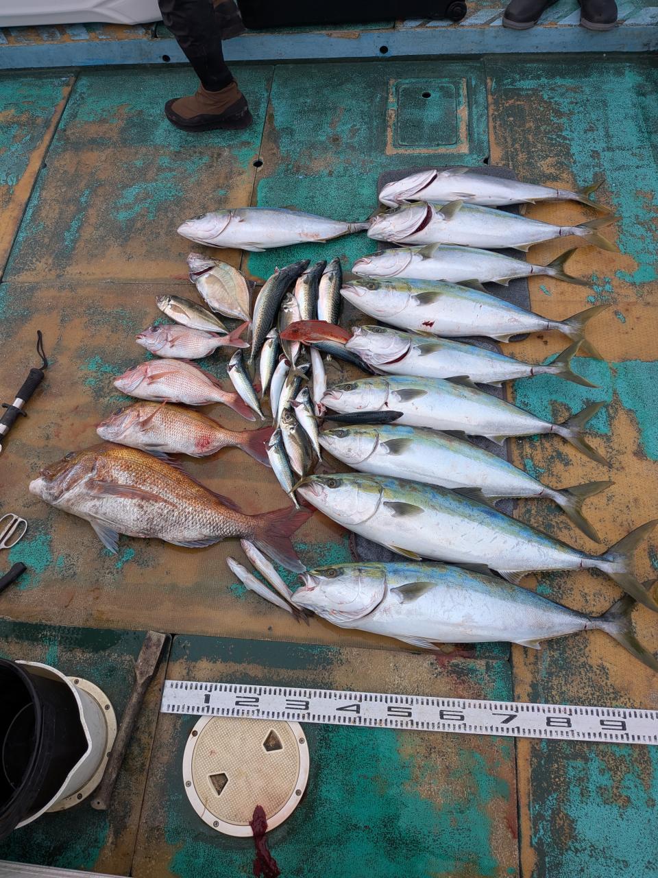 77センチの大マダイさんを筆頭にナナマル他良型マダイさん、サバ、ダイゴロウ、ホウボウ君等がぼちぼちとヒットー!