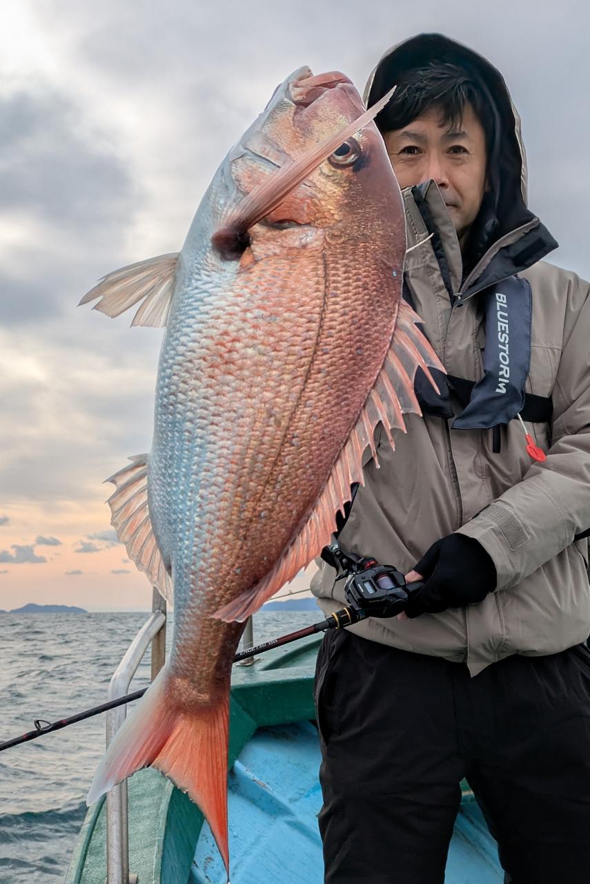 それからジギングでは潮緩くて食いは積極性に欠けるものの、ドでぶり君達がぱらぱらヒット。そしてタイラバには今日は身厚のサクラダイさんもヒット!