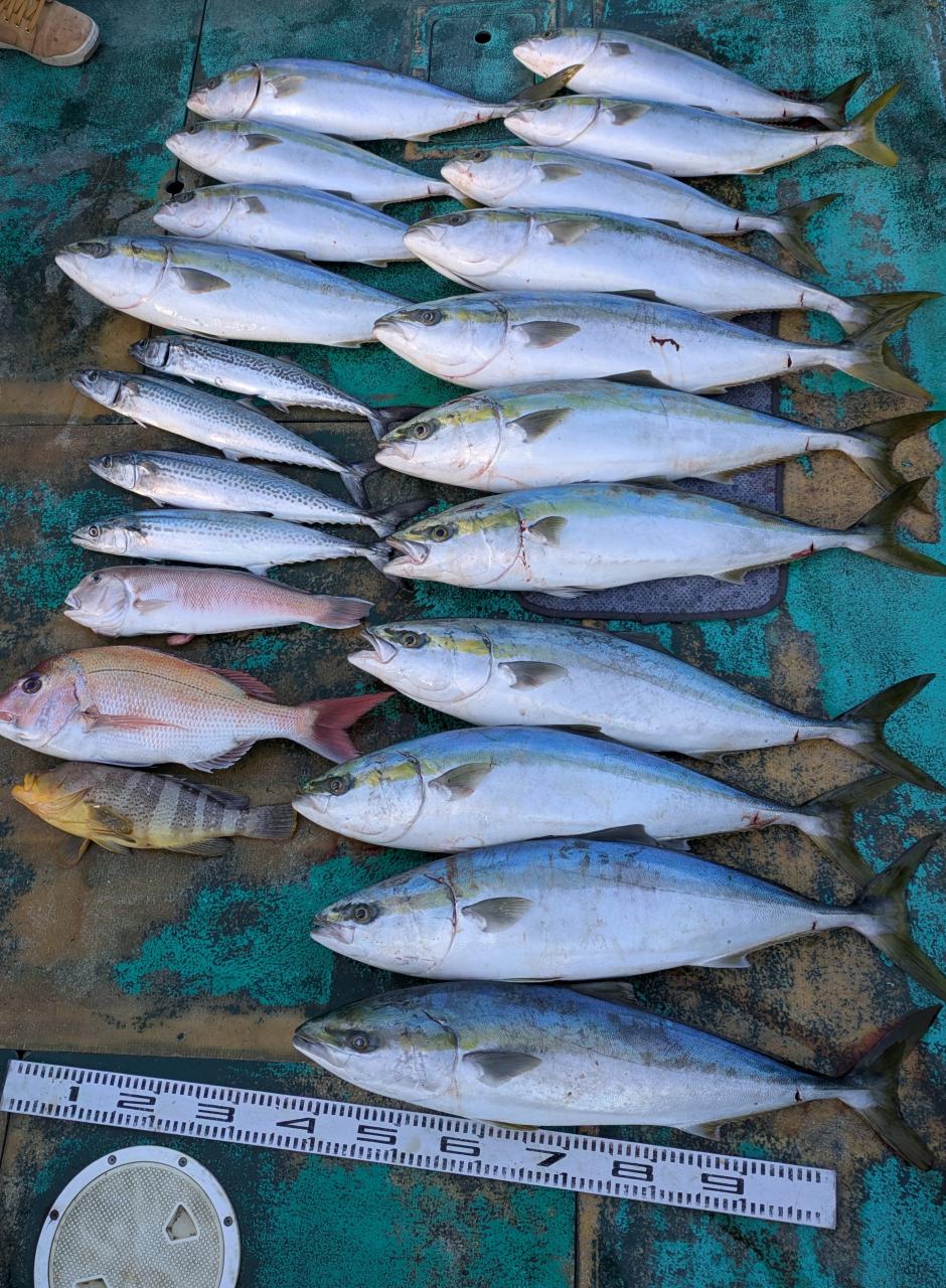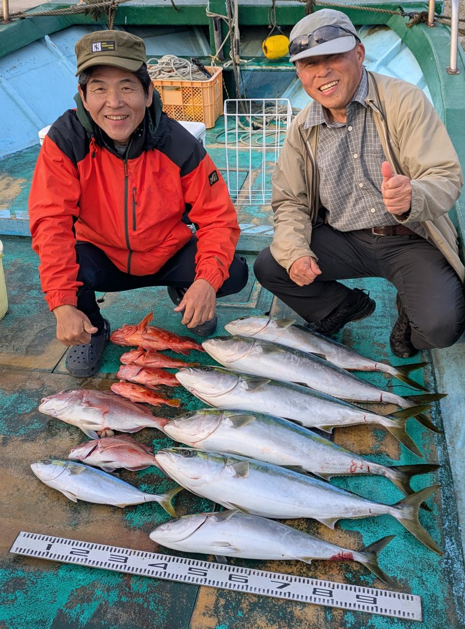 結果今日は潮緩すぎて、ナカナカ食わず!最終盤にて、タイラバにハマチ、ブリがダブルでヒット!もあって、皆さん何とかお土産確保〜。