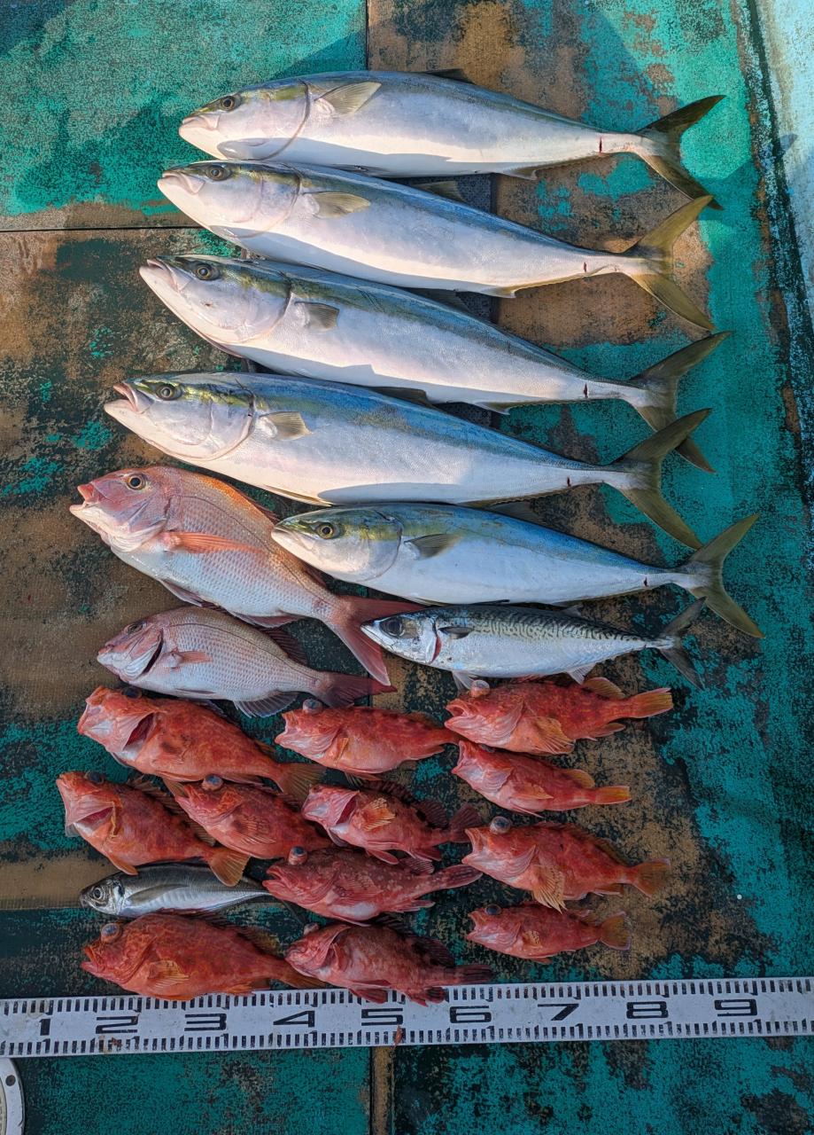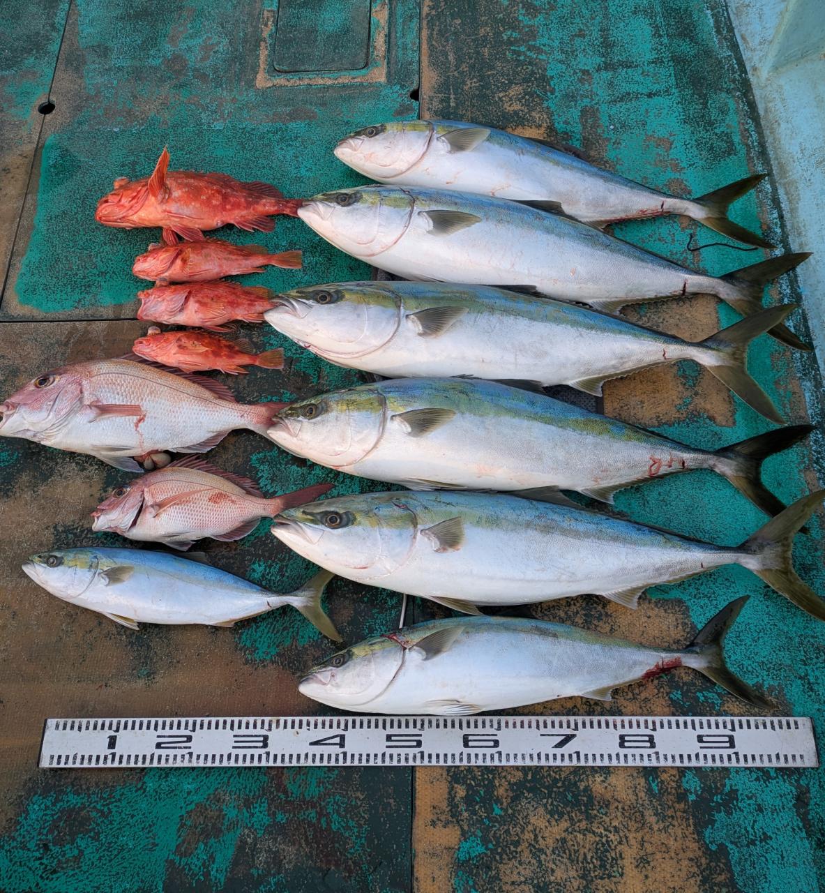 勿論、潮の動きはダルダルなので、積極的には食ってくれませんが、88㌢ブリ君筆頭にブリハマチぼつぼつヒット!他にアコウ、ホゴちゃん、アオハタ、デカイトヨリ等も来てくれました〜。