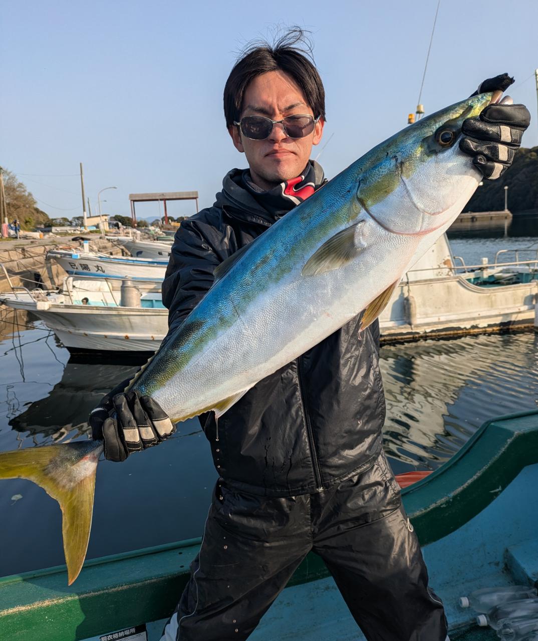 さて今日は朝イチから、タイラバを引ったくるようなアタリ!こりゃデカい〜!大マダイさんか!?と思ったけど、上がって来たのはドでっぷりのブリ君でした〜!よー引いた〜!!