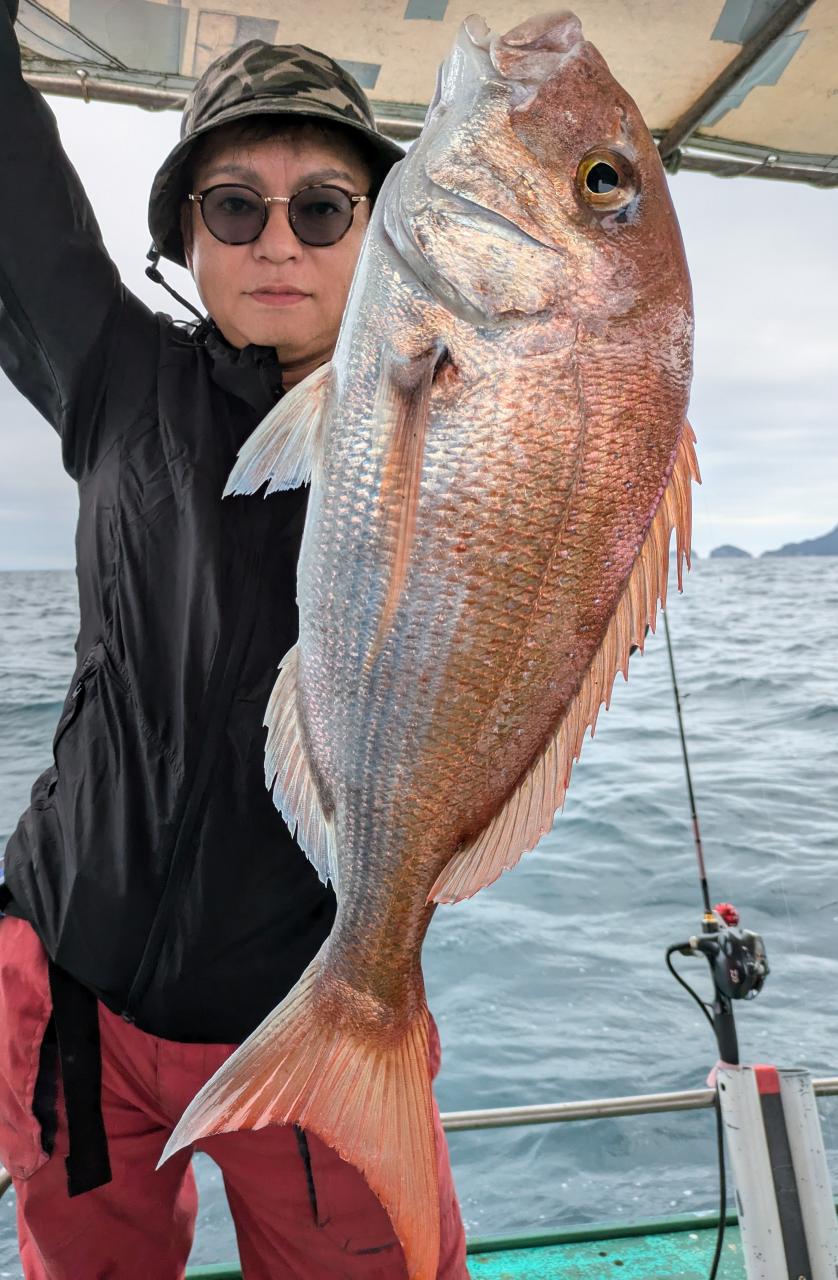 それでも粘って粘って、ロクマルオーバーマダイさんをキャッチ〜!オミゴトデシター!!!!