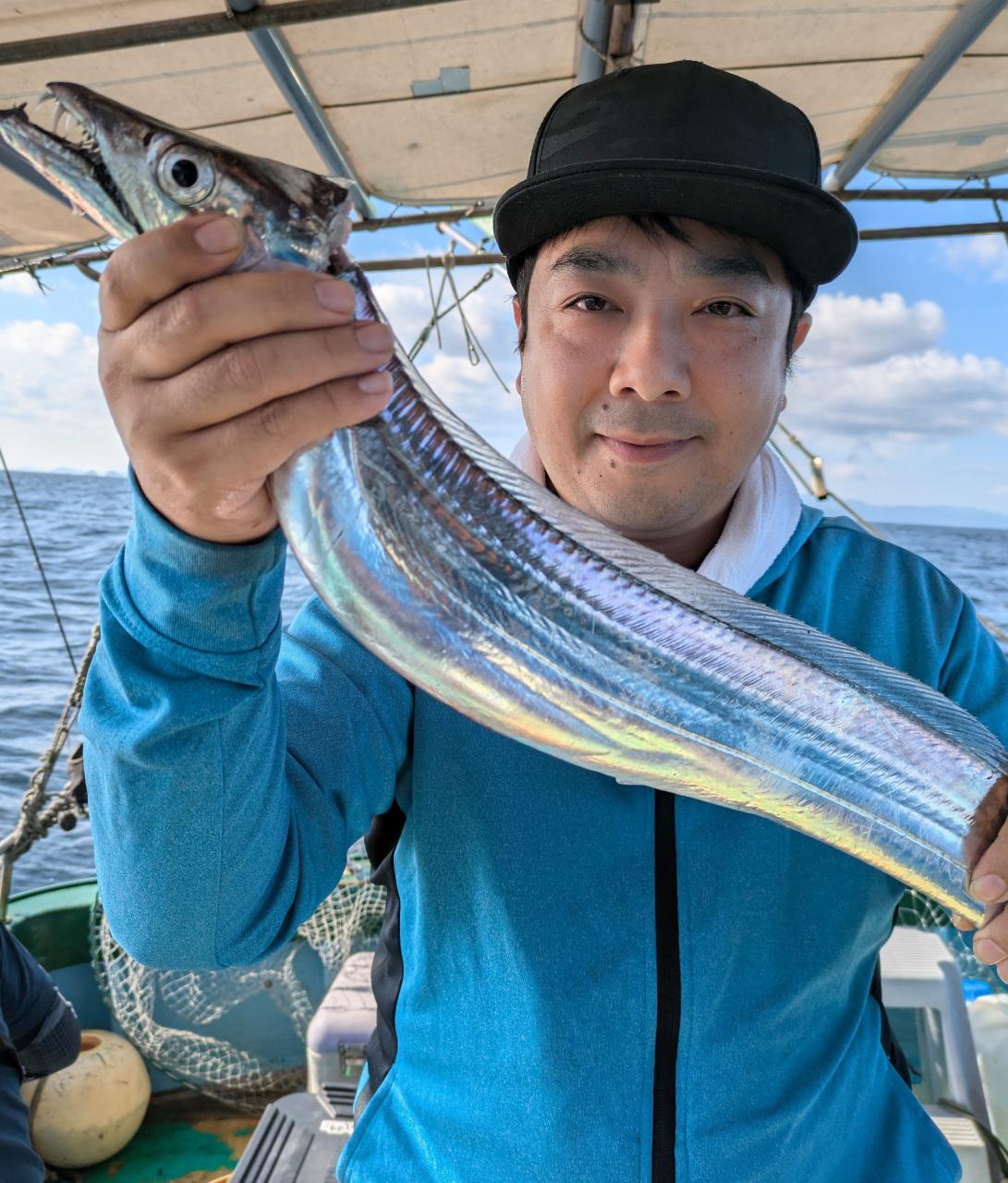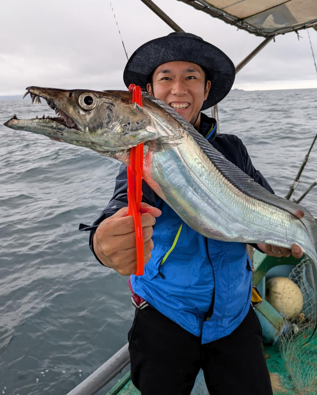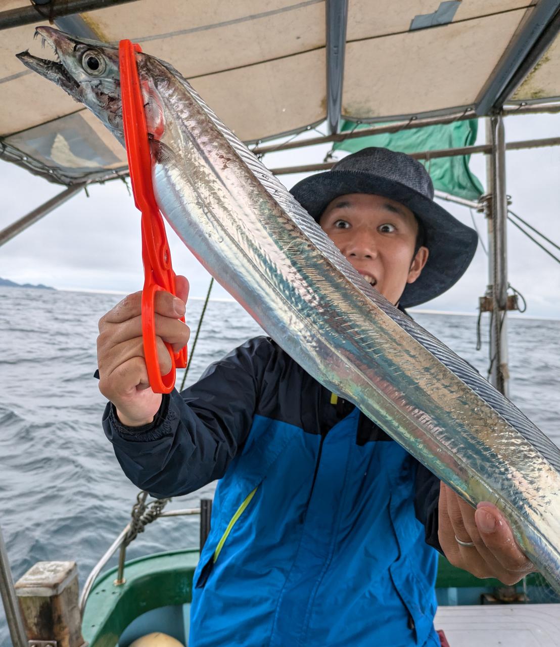 今日はタチウオ〜。朝の第一投目からタチウオさんヒット〜!