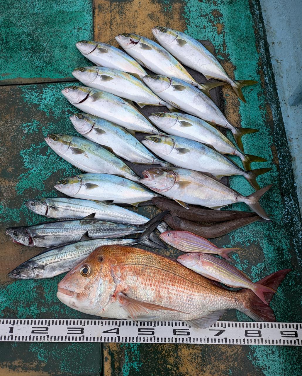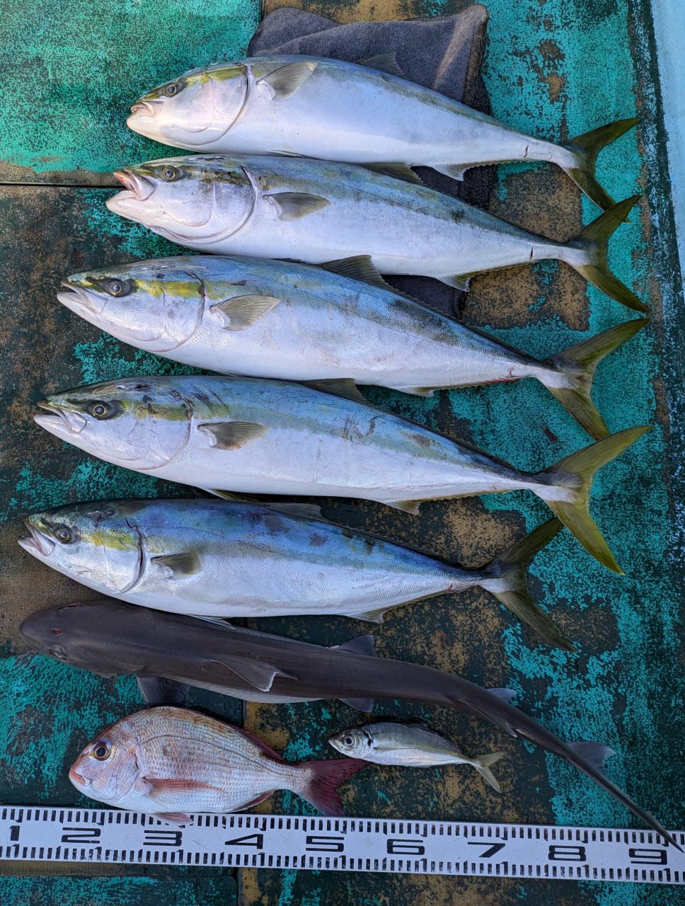 潮の変わり目には潮が止まってしまい全く食ってくれなくて、とってもアセッた時間もありましたが、最大フィンガー7、フィンガー6を筆頭に皆さんフィンガー5デーキルーナーラーコジンジュギョ…もキャッチ。良型ぞろいでヨイ釣果でありました〜。