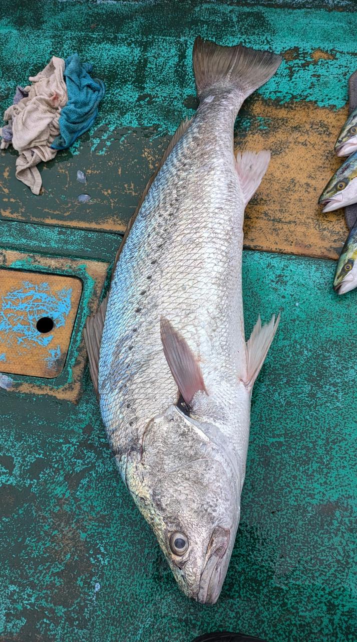 それでも、おお、第一投目から落とし込みでオオニベさんがヒット〜!なんとまあ良くぞこんなにも立派にお育ちになって…グスッ•́⁠ ⁠ ⁠‿⁠ ⁠,⁠•̀