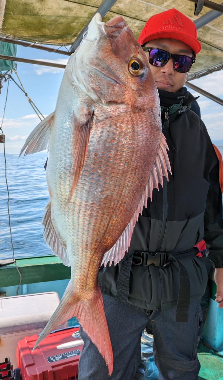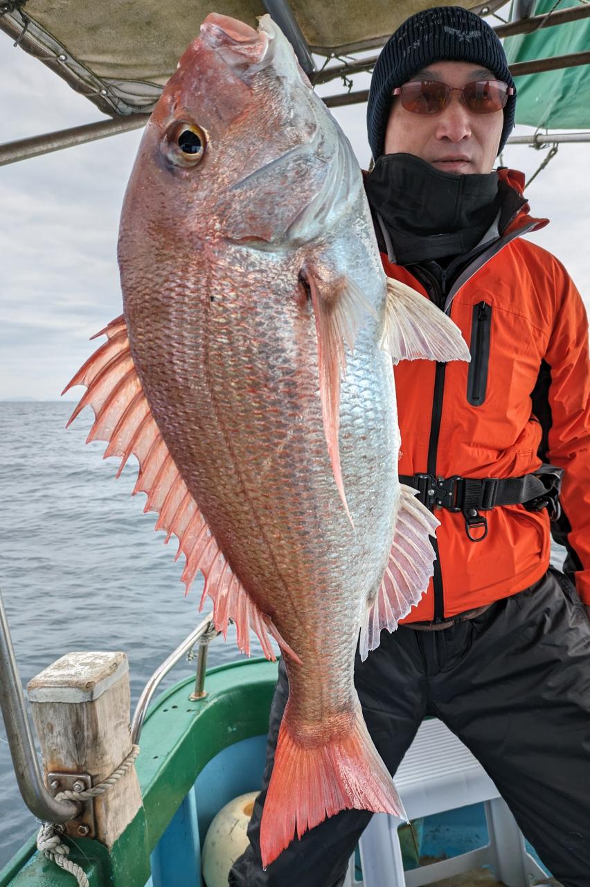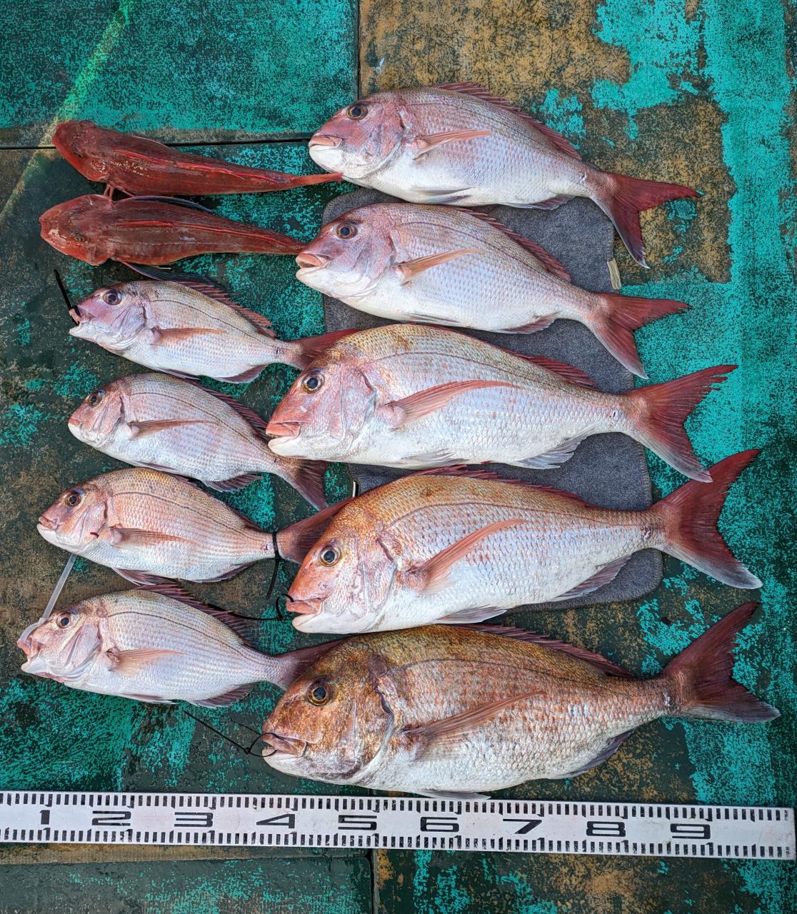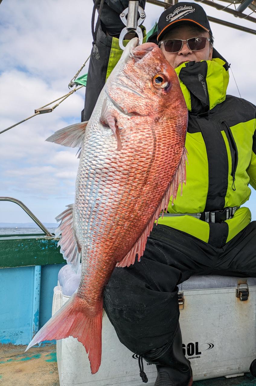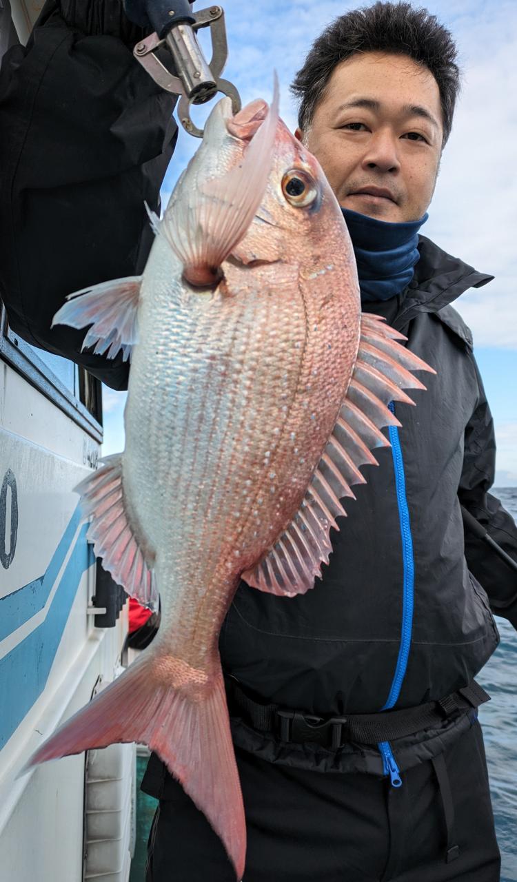 なかなかマダイさんのヒットは来ませんが、ちょっと深いところで待望のマダイさんのアタリ!マダイさんもキャッチだったのでありました〜。