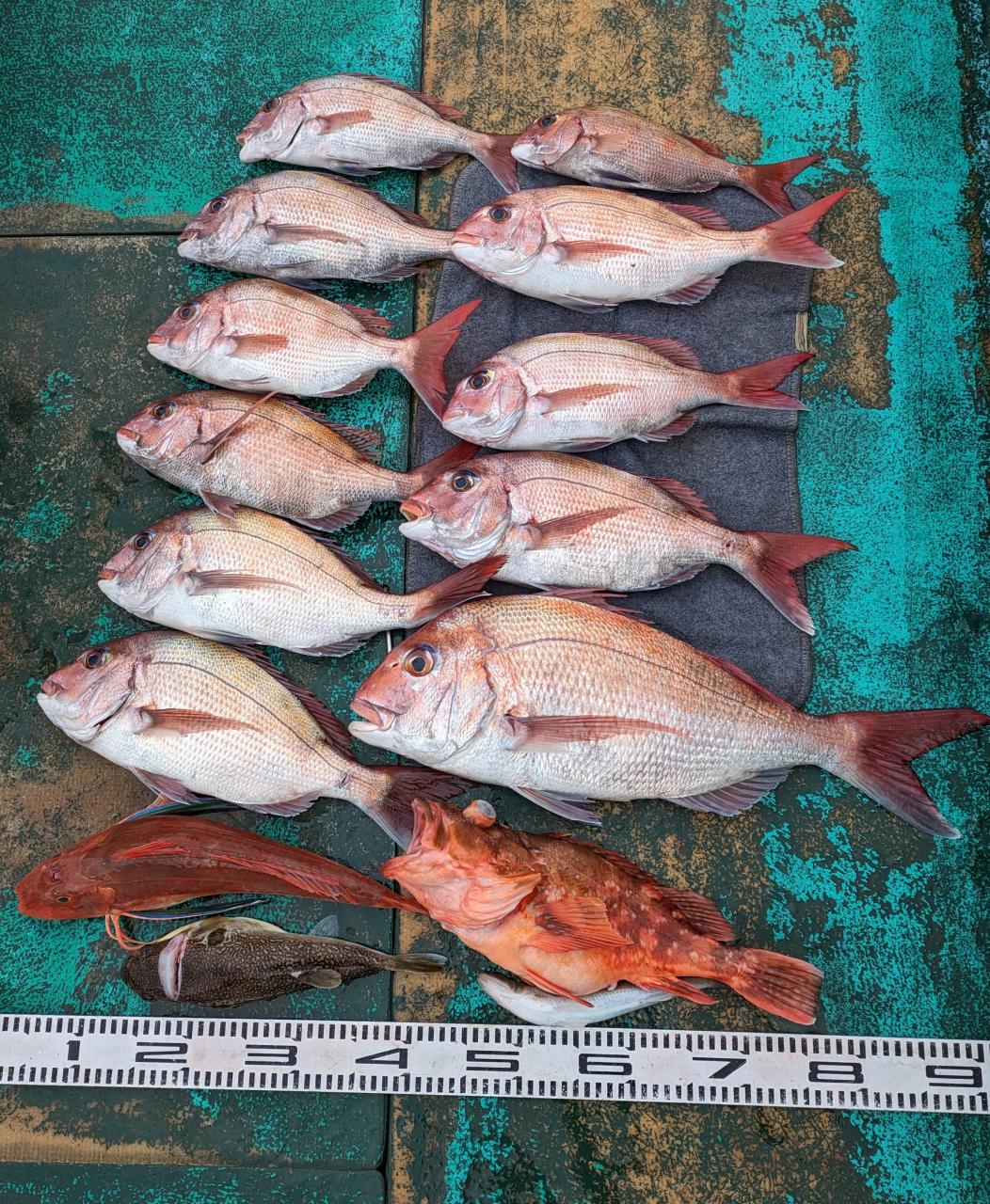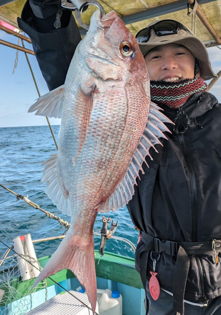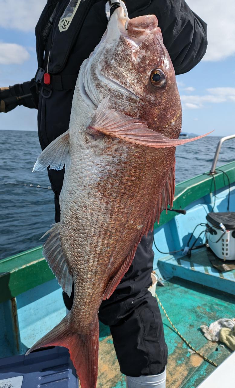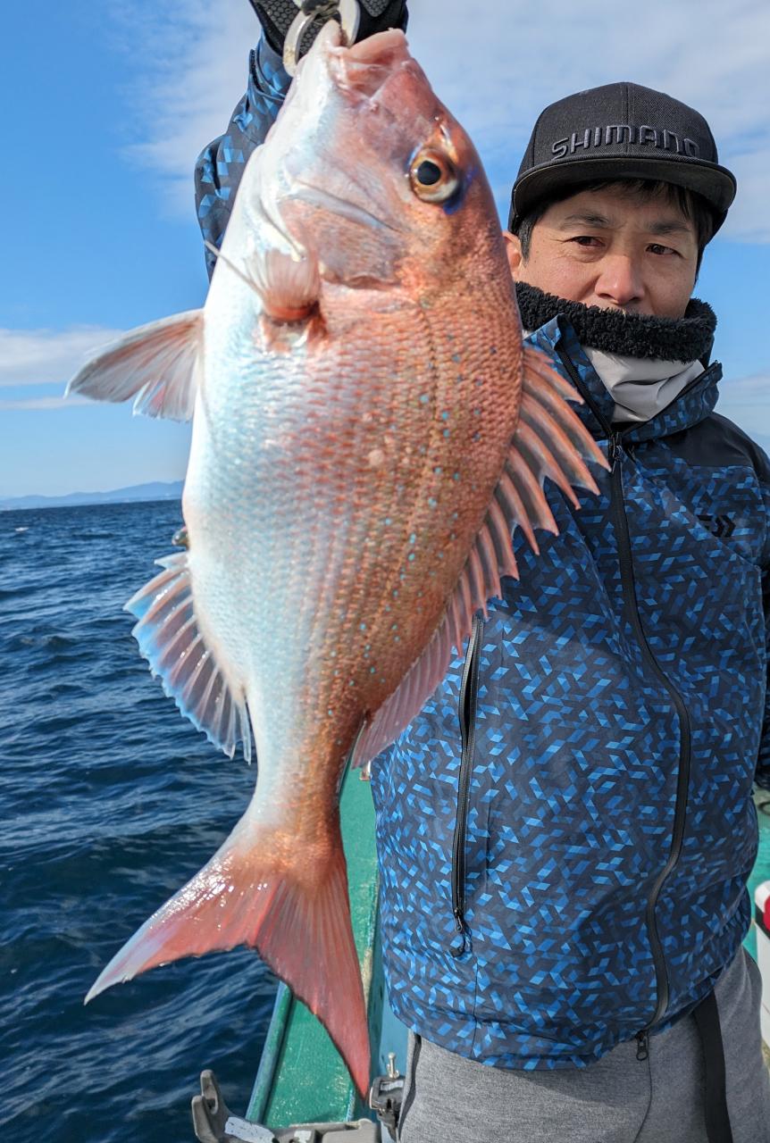 なかなかマダイさんのヒットは来ませんが、ちょっと深いところで待望のマダイさんのアタリ!マダイさんもキャッチだったのでありました〜。