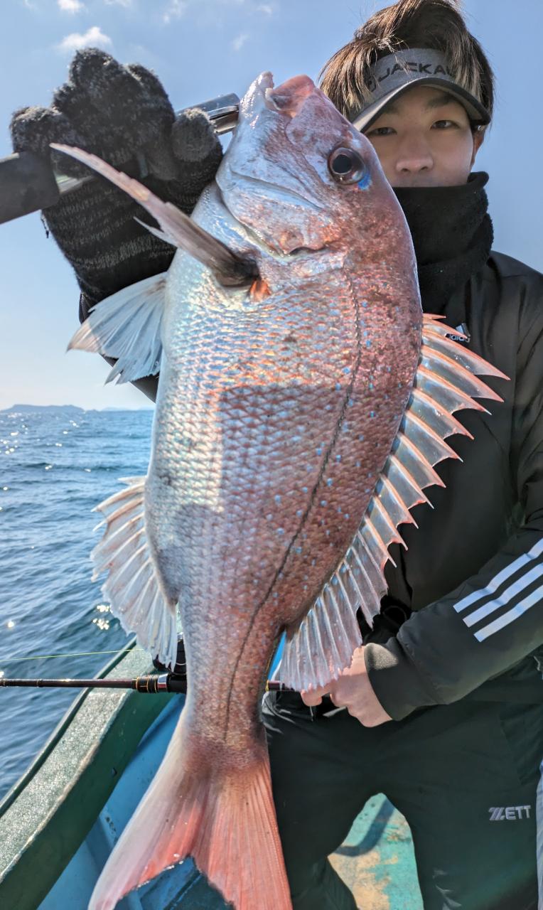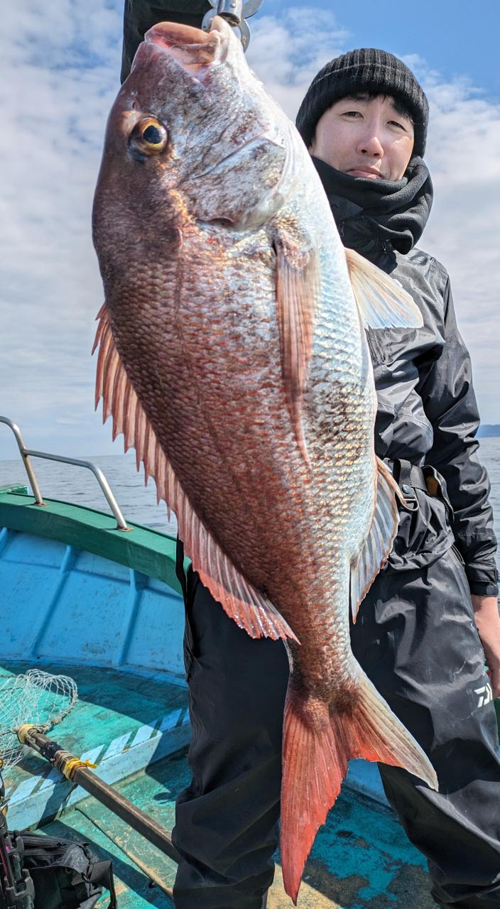 朝から食いは極めて渋いものの、65cmを筆頭に良型マダイさんがヒット〜!