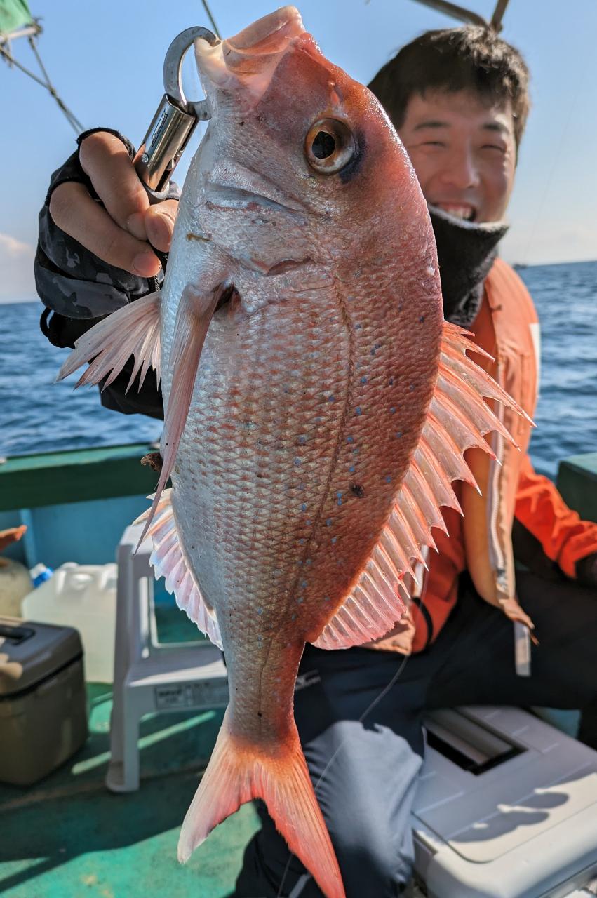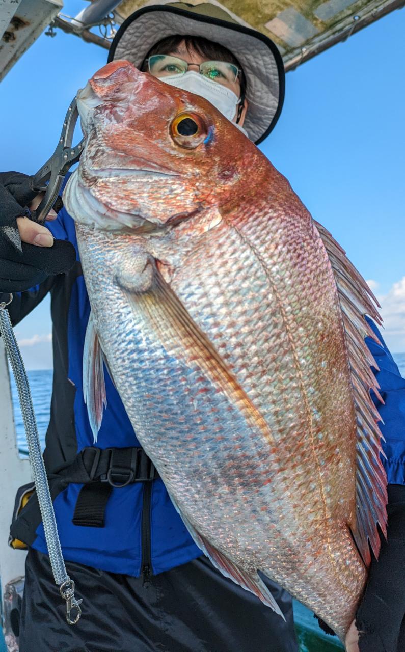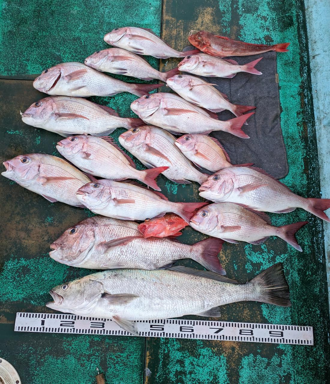 ナント!シロア◯様、54cmを筆頭に3連発〜!そして50cmオーバーのアオハタさん、マダイさん、デカイトヨリとヒット〜。