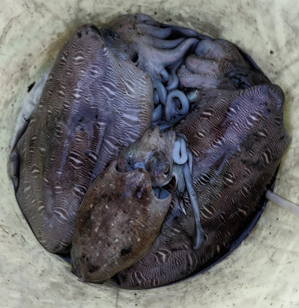 コウイカ君も上がって来ちゃったよー!そーっとそーっと。スミ爆弾に気を付けて〜。バケツの中でノウジルブシャー!