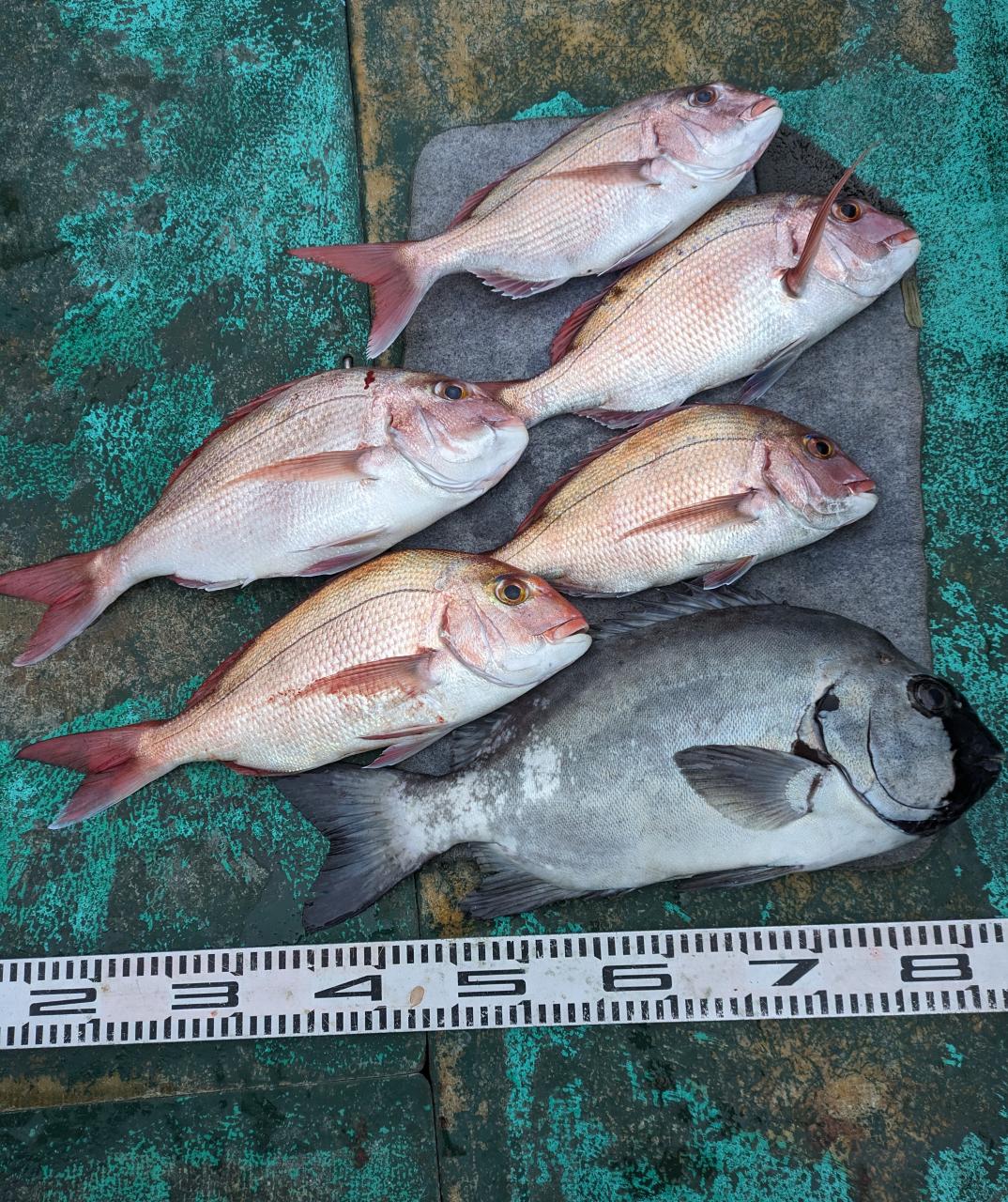 そんな時、寒さに震える我々をあはれに思ってか、海の神様からのプレゼント〜。ついにマダイさんヒット〜!ロクマルオーバーを筆頭にぽちぽちとマダイさんヒットしてくらました〜!